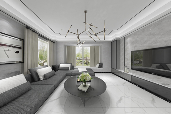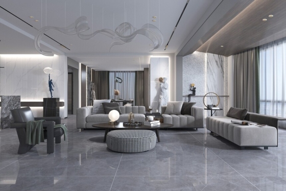 餐厅作为家庭聚餐与日常用餐的核心空间,地面材料既需具备 “高端美学质感” 以提升空间格调,又需满足 “防油污、耐磨损、易清洁” 的实用需求。现代大理石纹理瓷砖凭借高清复刻的天然大理石纹理(如卡拉拉白、爵士白、灰色大理石等)、适中的光泽度(哑光款反光率<12%,柔光款 15%-20%)及优异的物理性能(莫氏硬度≥6 级,吸水率<0.1%),成为餐厅地面工程的热门选择。以下以一套 130㎡三居室的餐厅工程为例,通过实景施工细节,解析现代大理石纹理瓷砖从选型、施工到最终呈现的全流程,为同类工程提供可复制的实践经验。一、工程概况