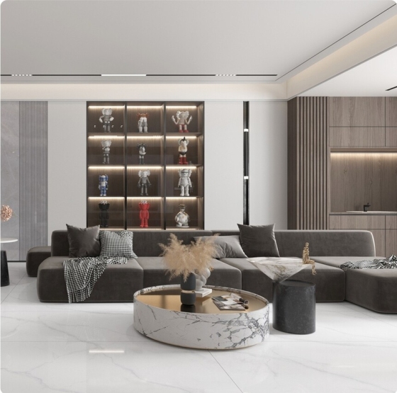 大平层的高级感,往往藏在 “无界延伸” 的空间美学里 —— 而超大规格瓷砖的 seamless 无缝连接设计,正是实现这种质感的关键。它通过弱化缝隙、强化整体,让地面与墙面如同整块材质铺就,瞬间拉伸空间尺度,即便是普通户型也能透出开阔通透的大平层气场。掌握瓷砖选型、铺贴工艺与细节处理的核心逻辑,就能用无缝设计解锁空间的高级表达。选对超大规格瓷砖是无缝设计的基础,尺寸与材质的适配直接决定最终效果。目前主流的超大规格集中在 1200×2400mm、1600×3200mm,甚至 2400×1200mm 的竖版规格,越大的尺寸意味着越少的缝隙,无缝感